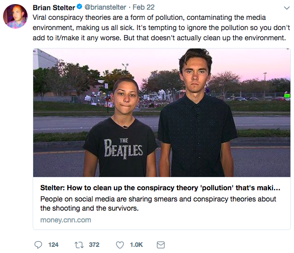 Google the words ‘shooting conspiracy’ and you’ll come up with a deluge of articles from mainstream outlets who helped sell the “weapons of mass destruction” lie to the world, including CNN. Do a Twitter search for the same words and you’ll find employees of mass media outlets doing the same thing; the same mass media outlets which blacked out Bernie Sanders during the presidential primary, which bolster the illusion of freedom and democracy and legitimize the two-headed one-party system day after day, which back every single military action of the US government without exception, which go full attack dog on third parties and government transparency advocates, which helped the US power establishment lie about Iraq, Libya, Vietnam, and Syria in order to manufacture support for interventionism in those countries.