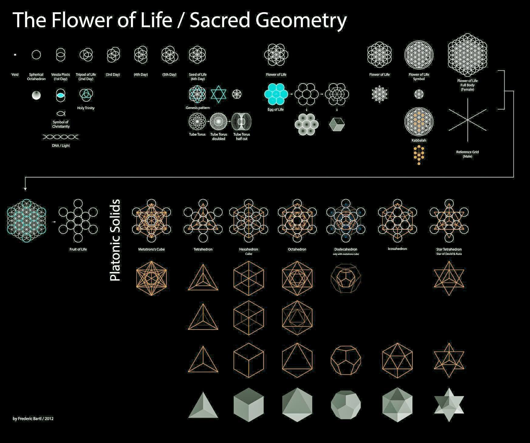 Sacred Geometry– Refers to a set of geometrical patterns, mathematical ratios, and structural designs found all throughout nature and the universe. Many people would describe this field as the blueprint for the design of the universe. Some of these patterns include the phi ratio, the Fibonacci sequence, the torus, the platonic solids, the flower of life, the fractal nature of how the universe grows, and many others. All of these patterns were understood by ancient civilizations and appear in different cultures around the globe that we are told are disconnected from each other. Nassim Haramein has done some great work in this field.