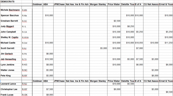 “It looks like big banks and corporations agreed to donate to the Democrats a certain percentage of the allocated TARP funds.”