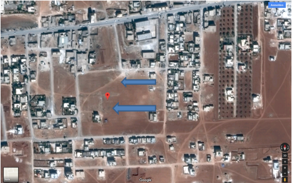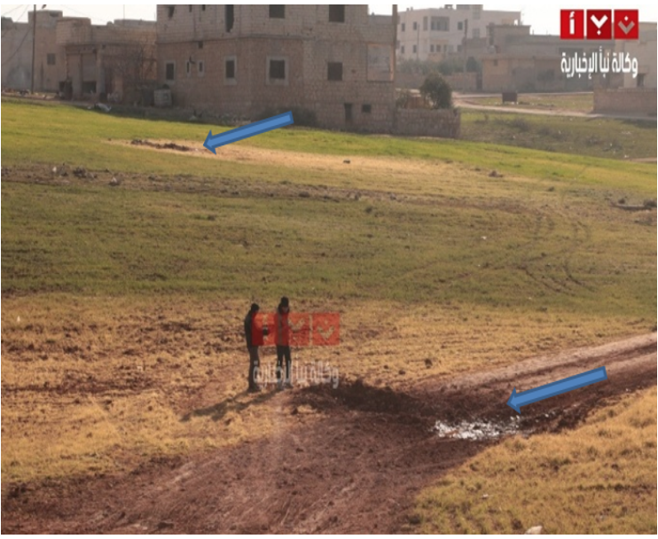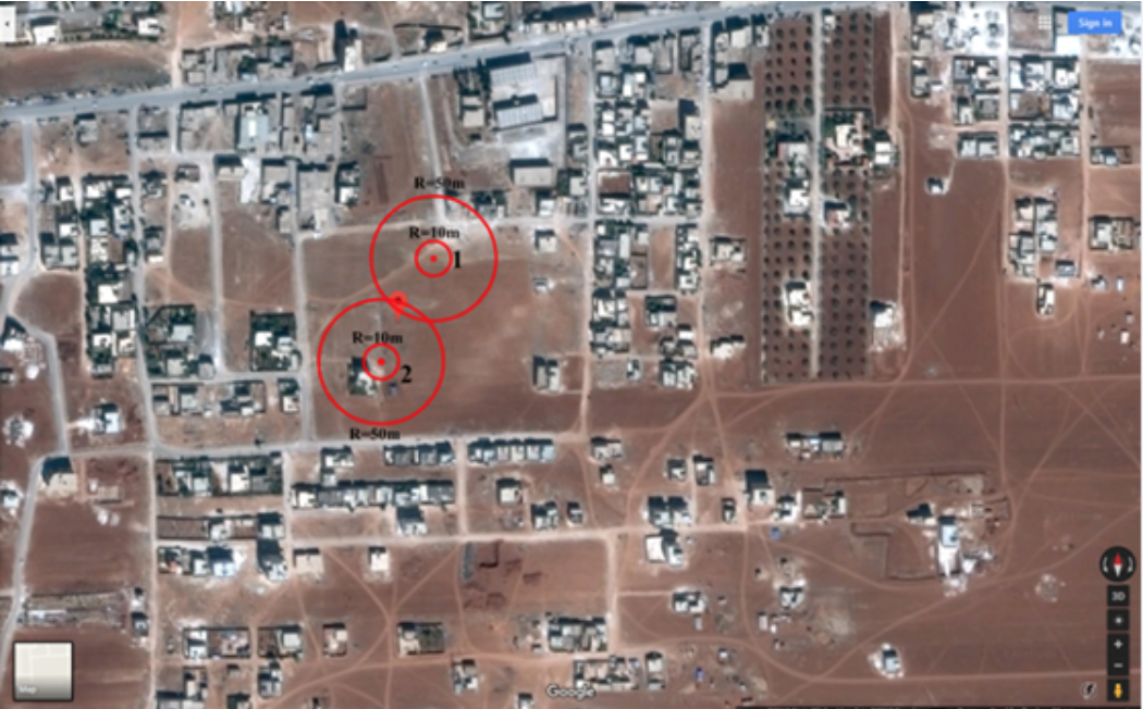 First, we’ve analyzed the craters formed, according to locals, by the barrel bomb with chlorine gas dropped on Saraqeb.