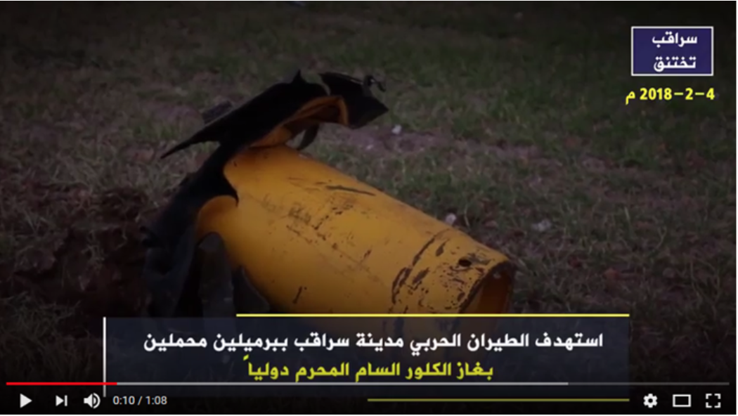 The article was written by Syrians for Truth & Justice special report group allegedly provides evidence of a chemical attack and contains the statements by the supervisors of the so-called Aviation Observatory which monitors the movement of warplanes in Saraqeb skies. The officer said that a helicopter with a designation “Alpha 253” had taken off from al-Manjazrat School, located in Hama countryside at 9:00 pm on February 4, 2018, and headed towards the north of Syria.