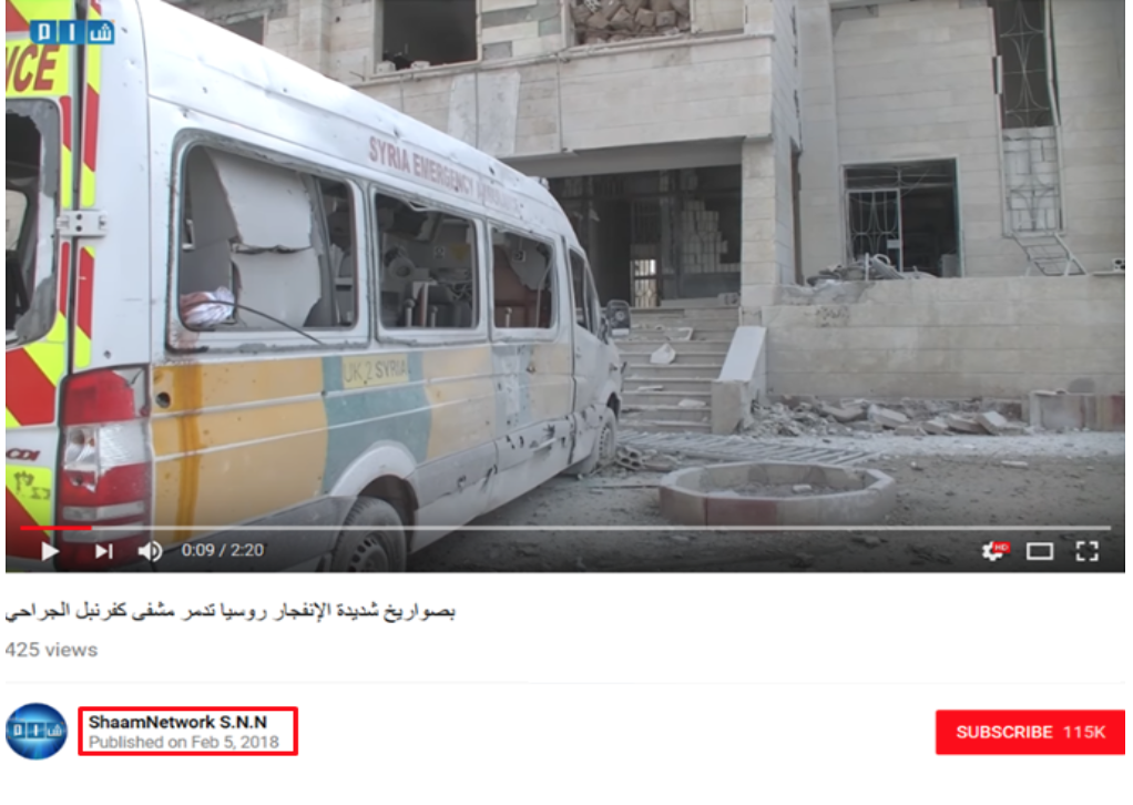 Here’s another oddity: rescuers are carrying out only two injured persons with no trace of dust on them. It means that these patients had been moved there to make a staged video about the aftermath of “an airstrike” on the hospital in February, 2018. The footage doesn’t show a real rescue operation through the hospital allegedly treats up to 200, 000 patients a year!