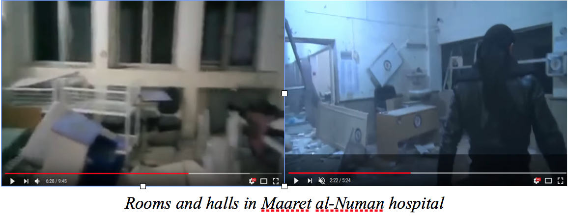 Speaking of the Maarat al-Numan hospital we can say that its interior also looks doubtful as there’s no wall damage while the hospital rooms and halls don’t seem to be used for treatment: many of them are full with trash and lack medical equipment.