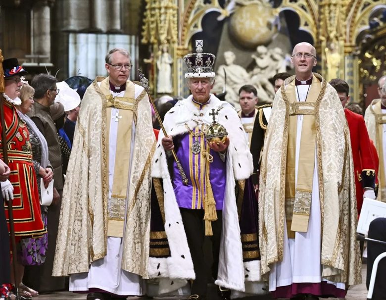 Most people watching King Charles III sprinkled with water from the River Jordan during his coronation had no idea what insane symbolism was occurring. In the mind of Charles and the broader oligarchy he represents, this ritual symbolizes Charles as the blood heir to the throne of Christ himself. The choice to carry a metallic globe and cross symbolizing his divine right to rule the entire globe as prima inter pares (first among equals)—a symbol of the Holy Roman Emperor—should also not be ignored (see image below).