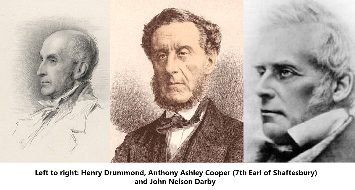 The Plymouth Brethren emerged onto the scene in tandem with a tightly knit network of Anglican/Jesuit intelligence operatives who operated under the leadership of 1) Henry Drummond (financier and co-founder of the New Apostolic Church founded in 1834), 2) Lord Anthony Ashley Cooper, the 7th Earl of Shaftesbury, and 3) John Nelson Darby (founder of the ‘Exclusive Brethren’ Plymouth Brethren and leader of the sect).
