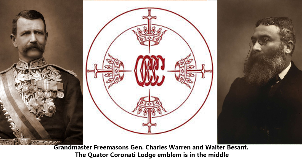 Working directly under Prince Albert Edward was Sir Charles Warren, chief of the Palestine Exploration Fund (PEF) and First Grand Master of the Quatuor Coronati Lodge, which was established in 1886. The Quatuor Coronati (Four Crowns) was the first archeology lodge devoted to mapping out the Middle East and ultimately rebuilding Solomon’s Temple, which was destroyed in 70 CE.
