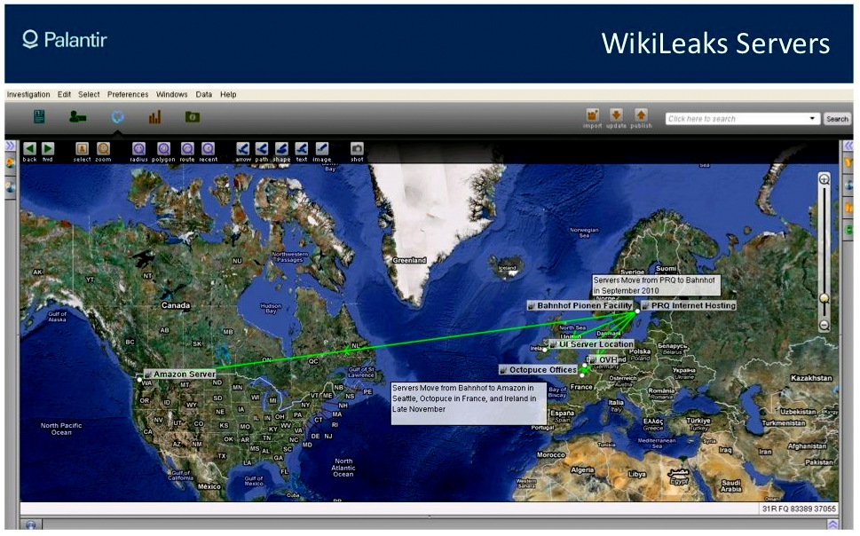 It’s no surprise that Palantir has developed capabilities that allow it to thwart the leak of government information to organizations like WikiLeaks by tracking – and predicting – the actions of potentially disgruntled government employees, soldiers and contractors. In 2010, the U.S. government was left reeling following WikiLeaks’ publication of the Iraq War logs and other documents allegedly leaked by Chelsea Manning. Already a top government contractor at the time, Palantir, along with two other top technology companies contracted by the government — HBGary Federal and Berico Technologies – was tasked with developing a plan not only to silence WikiLeaks but to destroy it completely.
