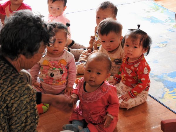 Inside the child-care center of the Jangchon Cooperative Farm. The cooperative also includes a cultural center for meetings and events, and rows of greenhouses.