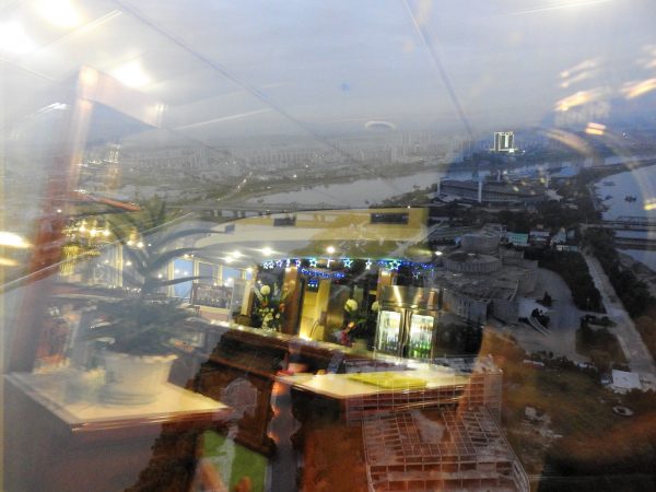 A revolving bar and restaurant at the top of Yanggakdo Hotel overlooks a modern, rebuilt city. The DPRK receives tourists from around the world — especially China and Japan, but also South Koreans — and is continually opening up areas for tourism. The potential for more American tourism was recently stymied with the September 1, 2017 U.S. travel ban.