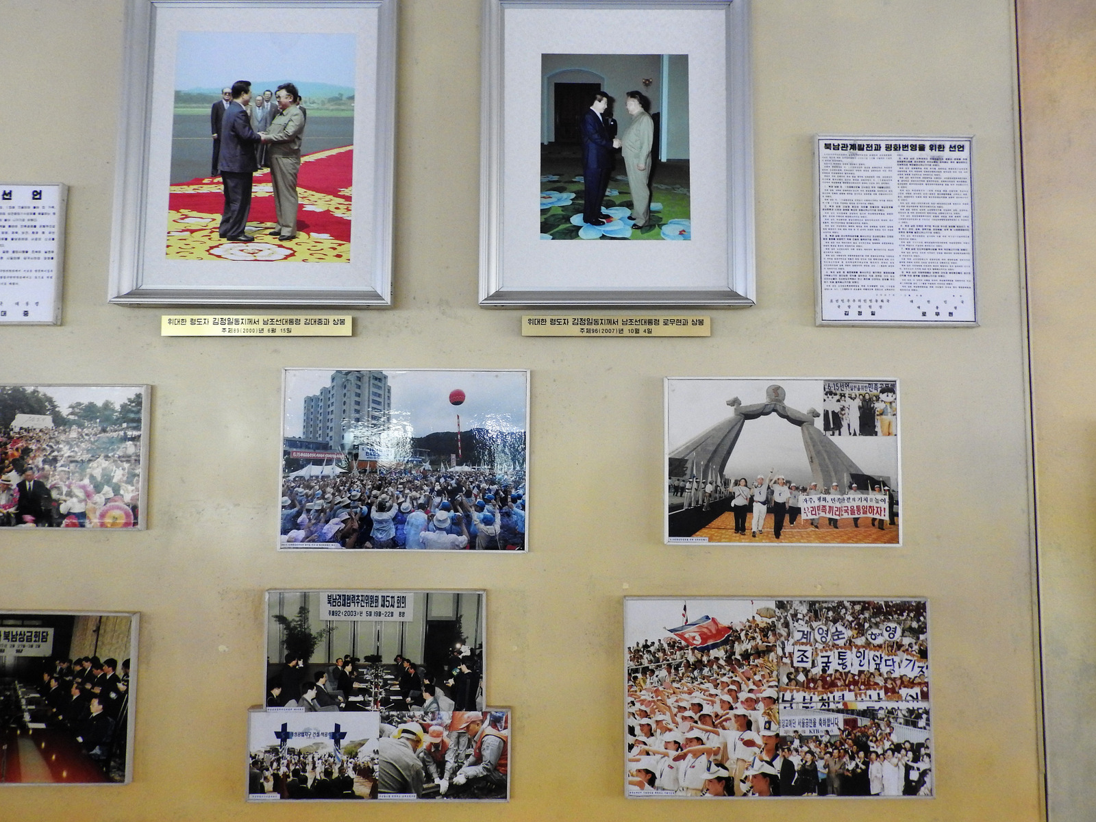 In a hall near the DMZ, photos depict 2000 and 2007 meetings between North and South discussing reunification, as well as the support of the people in both South and North. Our guide at Panmunjom noted: “On July 7, 1994, the day before he died, President Kim Il-Sung was looking through documents regarding reunification. He devoted his whole life to this.”