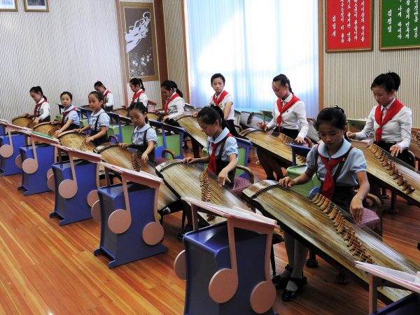 Students at the Mangyongdae Children’s Palace playing the traditional Korean instrument, the kayagun. Listen to their performance here.