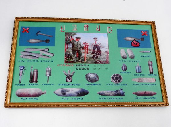 In a hallway in the Middle School, a poster encourages students to alert authorities if they come across unexploded ordnance (UXOs). Our host, Kim Song-Nam, said: “We’re still discovering old bombs, for example when we dig to lay the foundation for a building.” This article noted the discovery of nearly 400 UXOs near an elementary school playground, that farmers periodically come across UXOs, and that the cleanup period may take longer than 100 years. At the Pyongyang War Museum, we learned: “There were 400,000 people in Pyongyang, and they dropped more bombs than that on the city.” 428,000 bombs, according to the museum guide.