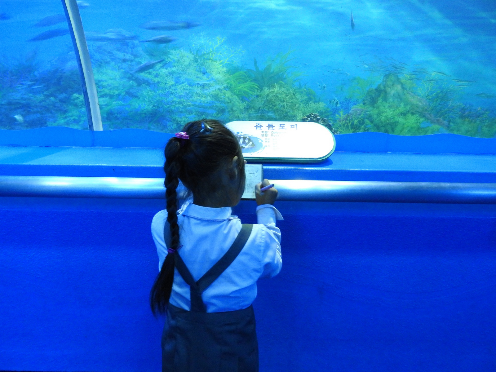 Student in the aquarium section of Pyongyang’s zoo. While the zoo was well-maintained, by far most interesting was watching the human interactions, from schoolchildren to adults. Koreans returned our smiles with deep, genuine smiles. Watch a clip from the zoo.