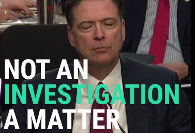 As a reminder, Comey said Lynch instructed Comey not to call the criminal investigation into the Clinton server a criminal investigation. Instead, Lynch told Comey to call it a “matter,” Comey said, “which confused me.” Comey cited that pressure from Lynch to downplay the investigation as one of the reasons he held a press conference to recommend the Department of Justice not seek to indict Clinton.