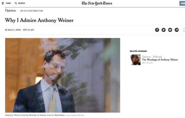 The Blatant NYT Attempt To Normalize Pedophilia: “Why I Admire Anthony Weiner”